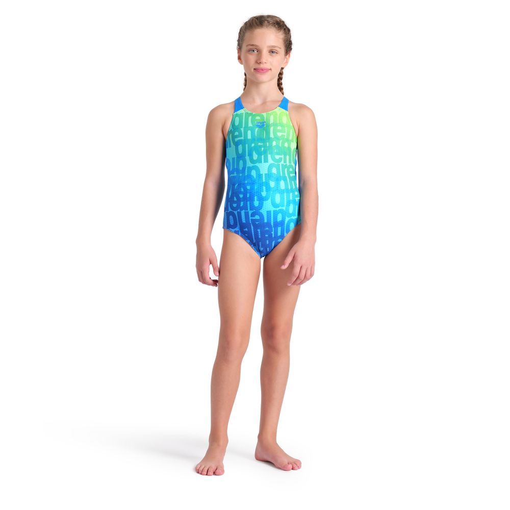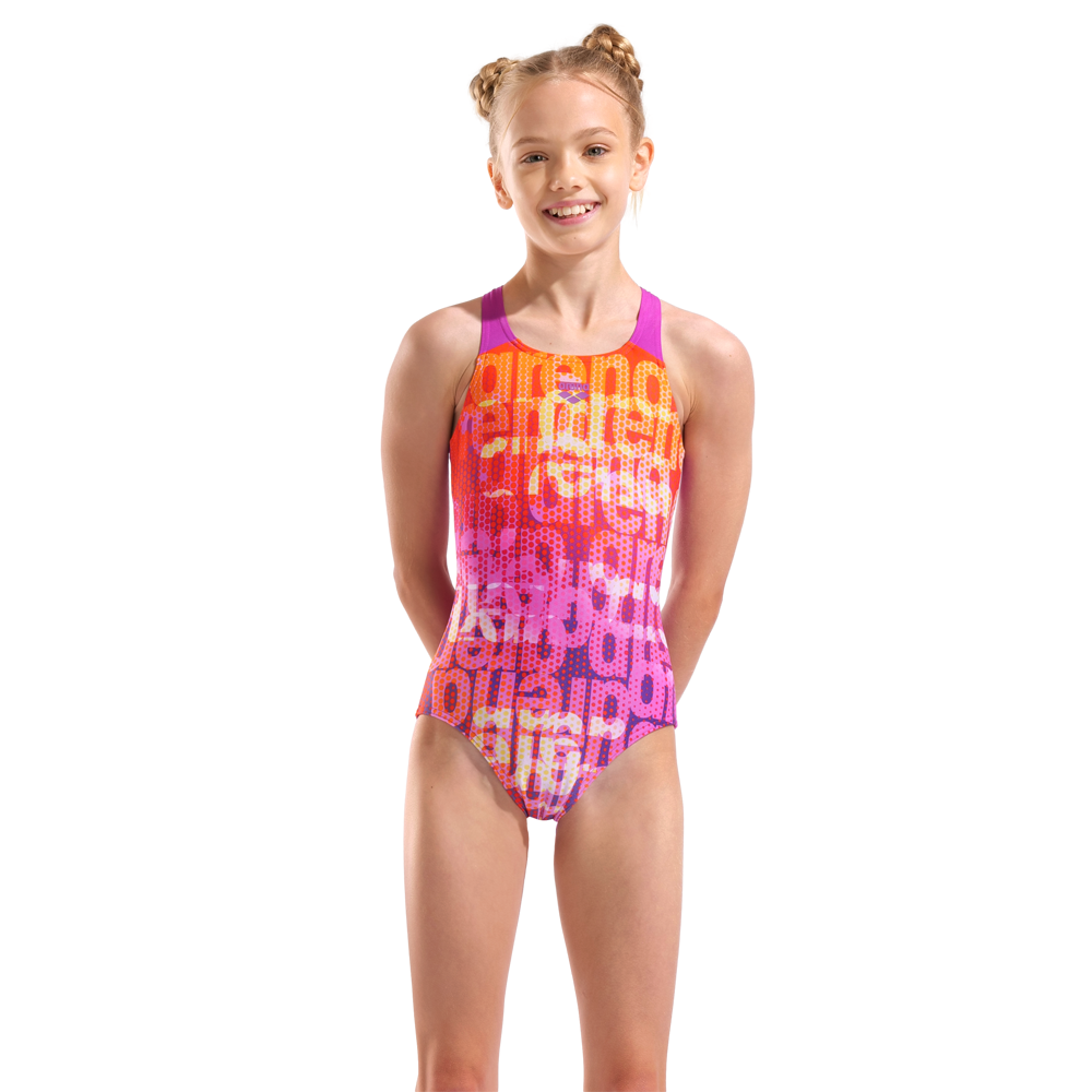 Practice your stroke drills, flip turns and start dives in our Multi Colours Swimsuit for girls. Designed for long-haul swimming, this one-piece features a diamond-shaped cutout at the back for flexibility, plus dégradé colours and the arena name for a dynamic look. Made partially with recycled polyester, it reflects our dedication to innovative materials while delivering top-notch chlorine resistance.